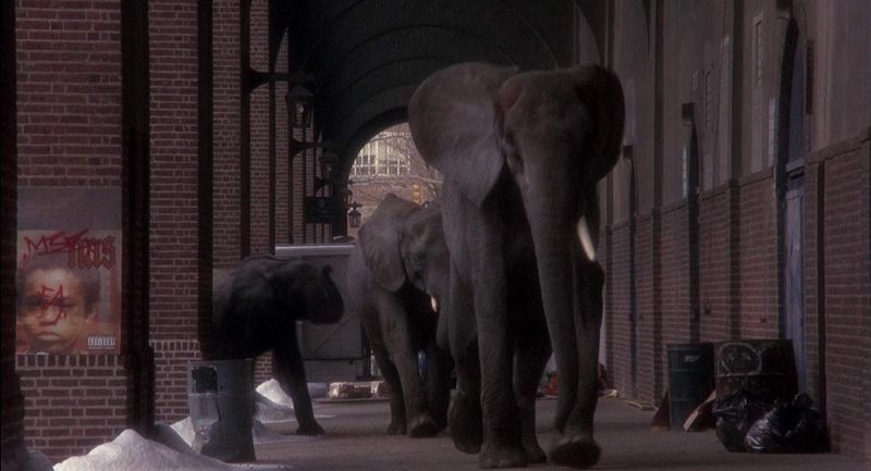 Le genre 'Post Apo'en Sf utilise largement l'animal comme métaphore de la folie humaine, ou du moins de sa déchéance. C'est par le biais du retour non pas à, mais de la nature. L'humanité, décimée par un virus (L'armée des 12 singes de Terry Gilliam en 1996 ; Je suis une légende de Francis Lawrence en 2007), par le réchauffement climatique (Waterworld de Kevin Reynolds en 1995) ou par toutes autres causes plus ou moins mystérieuses (Annihilation d'Alex Garland en 2018 ; les Mad Max de Georges Miller entre 1979 et 2015) voit les retour des animaux qui occupent les espaces précédemment humains telles les villes. Ainsi à la fin du film L'Armée des 12 singes on voit des éléphants, des girafes, des singes et des flamants roses en pleine ville (voir l'image ci-dessous)...