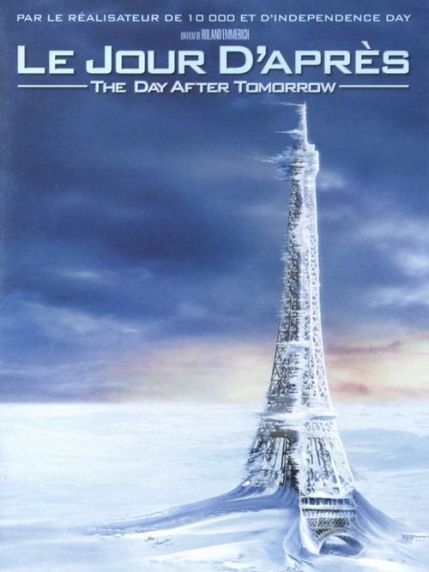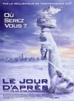 Le jour d'après (The day after tomorrow) est un blockbuster de Roland Emmerich aux ambitions écologistes. Le pitch est simple : le dérèglement climatique subit une brutale accélération qui, en quelques semaines, ravage l'hémisphère nord (ouragans, averses de grêle, tornades, inondations et, surtout, baisse spectaculaire de la température entraînant une nouvelle ère glaciaire). Le climatologue Jack Hall (Dennis Quaid) se démène à la fois pour sauver le monde et son fils, bloqué dans un New-York totalement englacé.
