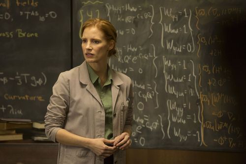 Murphy Cooper (Jessica Chastain) devant le tableau noir.
