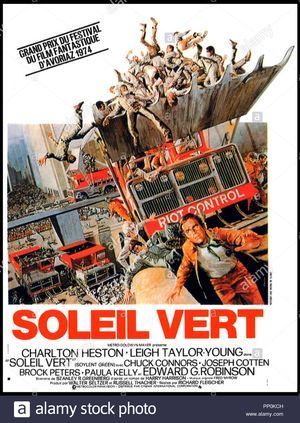 En 1966 Harry Harrison publie Make room ! Make room ! que Richard Fleischer portera à l'évran sous le titre Soleil Vert en 1973 (Grand prix à Avoriaz en 1974). Le film (qui bénéficie de la présence de stars comme Charlton Heston, Edward G.Robinson ou Joseph Cotten) est la 1ère grande œuvre populaire à portée écologique : pour toute une génération c'est le 1er contact avec les questions de surpopulation, d'épuisement des ressources et de menace environnementale. Le contexte est le surgissement des questions écologiques qui vont peu à peu remplacer la peur nucléaire : 1ère réunion du Club de Rome et parution du livre La bombe P de Paul R. Ehrlich en 1968 ; fondation de Greenpeace en 1971 ; publication du rapport Meadows et conférence sur l'environnement organisée par l'ONU à Stockholm en 1972 ; 1er choc pétrolier en octobre 1973...