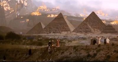 4 photogrammes de destructions planétaires : l'Opéra de Sydney ; la Tour Eiffel et les gargouilles de Notre-Dame à Paris (Independence Day Résurgence) ; les pyramides Egyptiennes de Gizeh... et l'Afrique !!!!
