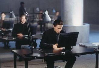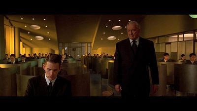 En haut : 2 vision sombres des open-spaces (Bienvenue à Gatacca et Equilibrium).